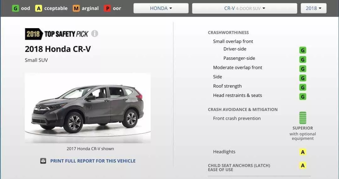 在IIHS (美國公路安全保險協(xié)會, 世界汽車安全標準的重要組成部分)的評選中, CR-V在各項安全都獲得了TOP SAFETY PICK+也就是最安全推薦的評分。