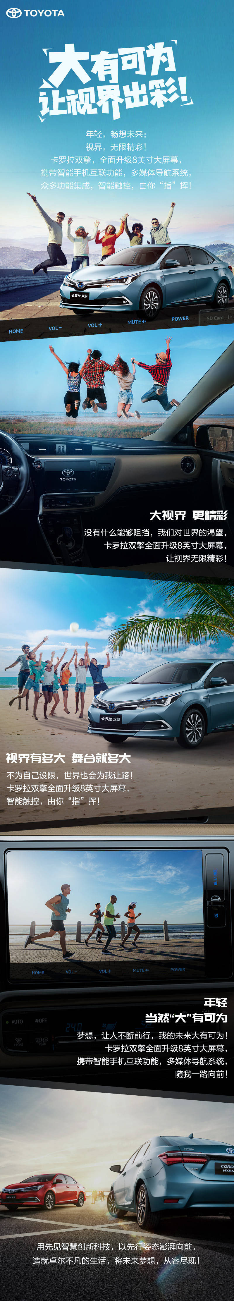 卡羅拉雙擎新升級8英寸大屏幕,