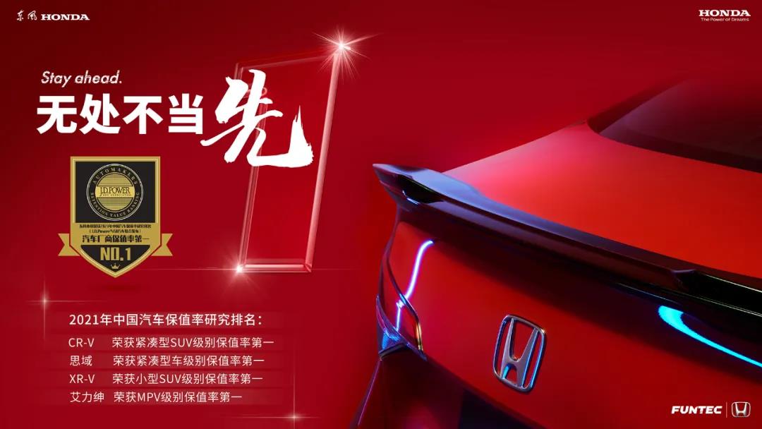 根據(jù)J.D. Power發(fā)布的《2021年中國汽車保值率研究報告》,東風Honda憑借高達63.4%的三年保值率成為廠商保值率第一名,并且旗下有4款車型登上細分市場保值率TOP1位置,可謂最大的贏家。