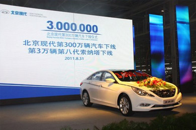 2011年8月31日,北京現(xiàn)代汽車有限公司(以下簡稱北京現(xiàn)代)第300萬輛汽車在北京正式下線。至此,北京現(xiàn)代成為國內(nèi)最短時間實現(xiàn)300萬輛產(chǎn)量的汽車企業(yè)。繼2010年4月8日第200萬輛下線后,北京現(xiàn)代僅用了16個月的時間就實現(xiàn)了第300萬輛汽車下線。北汽集團(tuán)董事長、北京現(xiàn)代董事長徐和誼在下線儀式上講道:“9年來,以‘現(xiàn)代速度’與‘現(xiàn)代品質(zhì)’鑄就的300萬輛,是北京現(xiàn)代發(fā)展過程中一個跨時代的里程碑?!?