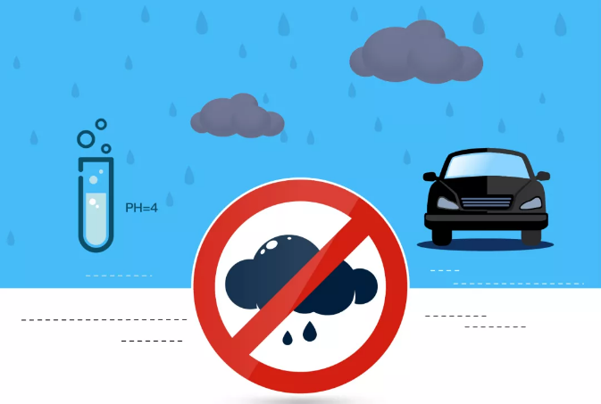 酸性的雨水落到車上